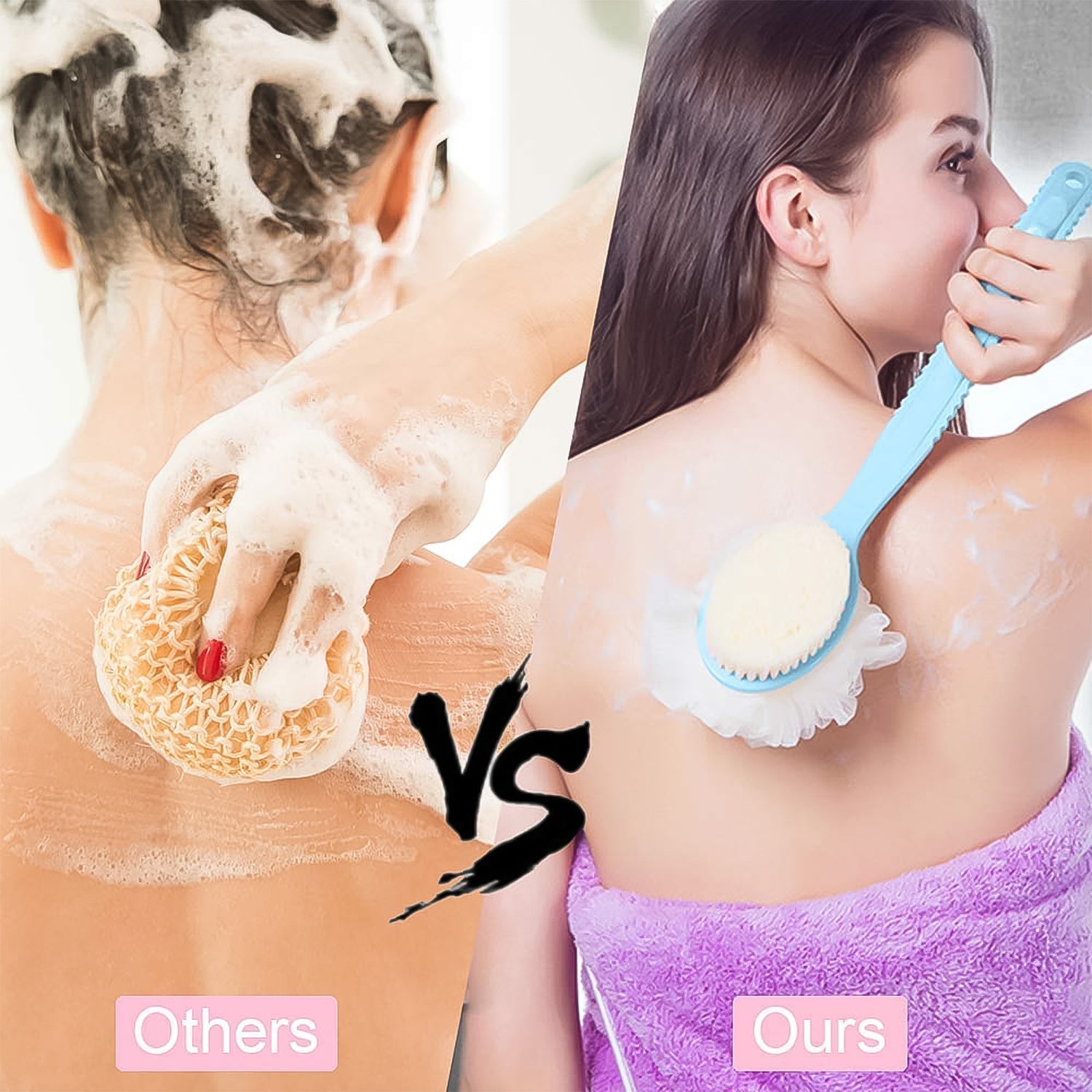 - Long Handle Effectively cleans your body as it long handle makes it reach even your mid-back, hamstrings, & other not-so-easy to reach body parts.